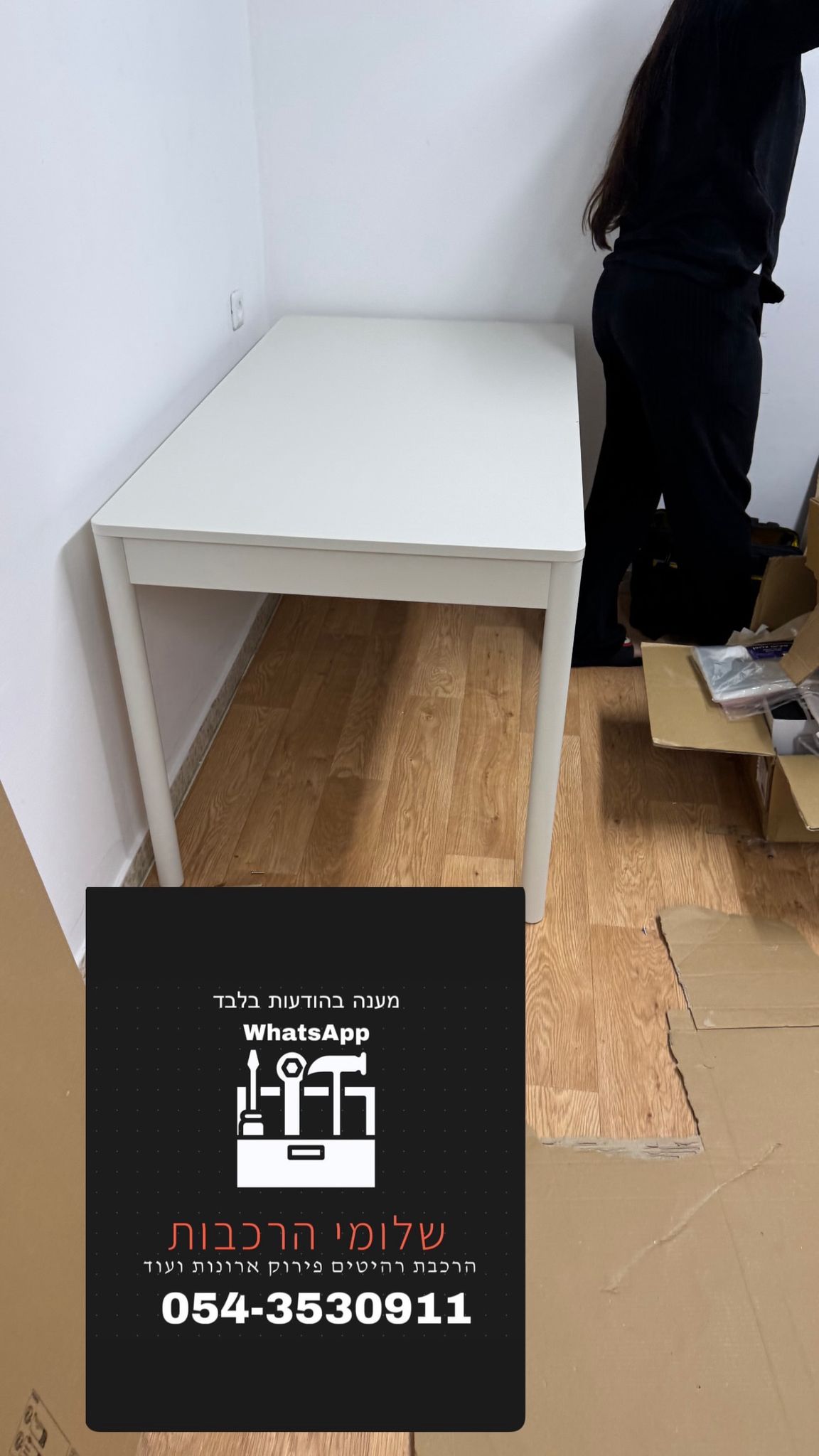 מרכיב רהיטים מתקין טלויזיות בקיר , התקנת ברזים , התקנת מדפים מרכיב שידות תיקון ציר לארון רגיל לא הזזה ועוד . אל תשכחו לציין כותבת וצילום המוצר ב WhatsApp שאתם רוצים לקבל עבורו שירות ותקבלו הצעת מחיר ( חשוב לציין כותבת בפנייה גם) תודה ….